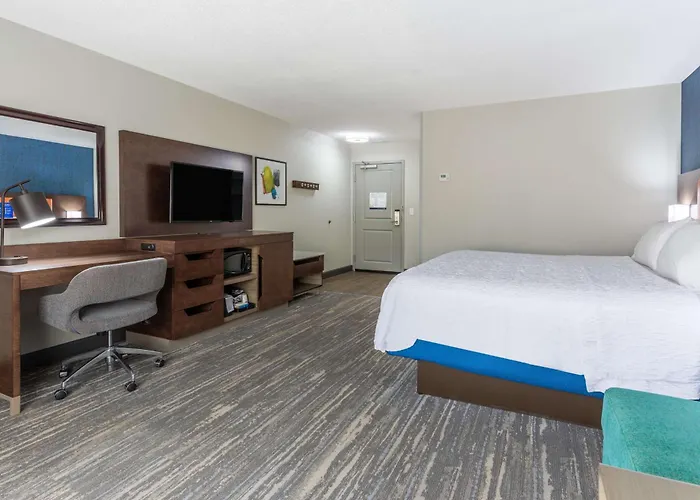 Guests of the accommodation will enjoy use of a community pool and a golf course at additional cost. The Hampton Inn also features a spa salon for you to relax in. There is a gym with a wide range of sports.
